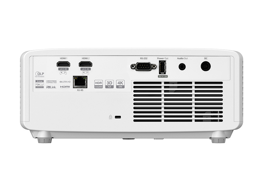 4K Ultra HD DLP PROJEKTOR ZA HIŠNI KINO OPTOMA UHZ35 z LASERSKIM virom svetlobe. Privzeta ločljivost 3840×2160 UHD, svetlobni tok 3500 lumnov, kontrast do 500.000:1, življenjska doba do 30.000 ur, 1,6-kratna optična povečava, projekcijsko razmerje 1,40–2,24:1, zvočnik 15 W, teža 3,0 kg. Vgrajen DuraCore laser omogoča dolgo življenjsko dobo z minimalnim upadom svetilnosti, nadzor laserske moči in svetlosti, popravek trapezne slike V in H, možna 360° namestitev, nadzor preko LAN (Crestron, Extron, AMX, PJ-Link), izboljšano igranje iger (podpora 4K pri 60Hz z zamikom le 17 ms, 1080p pri 240Hz z zamikom le 4,4 ms), igralni način, slikovni način Golf Sim zagotavlja realistične zelene in modre odtenke ter impresivne podrobnosti tudi pri prižganih lučeh, HDR podpora (HDR10 in HLG), polna 3D podpora, Certifikat WiSA (delovanje z oddajniki WiSA Soundsend, kar omogoča brezžično povezavo z zvočniki s certifikatom WiSA), kalibracija barv (CMS), zunanji napajalnik za večjo zanesljivost, prenosljivost in energetsko učinkovitost, Amazing Colour tehnologija omogoča prikaz barv po Rec.709 standardu, energijsko varčna tehnologija, zmanjšan ogljični odtis, trajnostni materiali in okolju prijazna embalaža, hiter vklop in izklop.