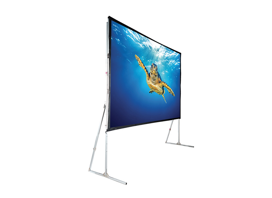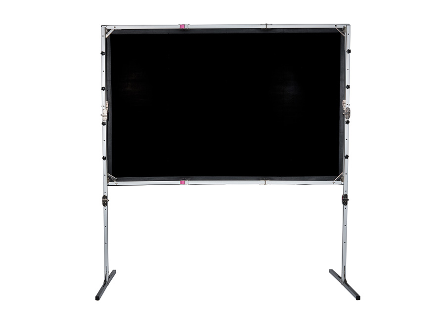 ZLOŽLJIVO PROJEKCIJSKO PLATNO SCREENLINE MEKANO za samostojno postavitev, velikost 520×333 cm, projekcijska površina 500×313 cm (diagonala 232”), format 16:10. Hitro in enostavno sestavljiva ALU konstrukcija – na klik, pritrditev platna s pritiskači (net gumbi) na ALU okvir, ki se ga namesti na dve priloženi stojali. Priloženo je platno za projekcijo od spredaj, bele barve, 10-cm stranski črni robovi, črna zadnja stran. Platno za projekcijo od zadaj je na voljo posebej. Minimalna oz. maksimalna višina platna je 355–475 cm. Za lažji transport pa se vse skupaj zloži v letalski kovček na kolesih (143x50x43 cm), teža 78 kg.